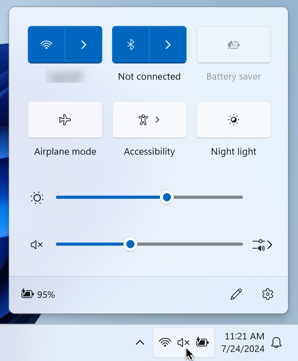 - Select the Network, Volume, and Battery status icons to open the Quick Settings menu.