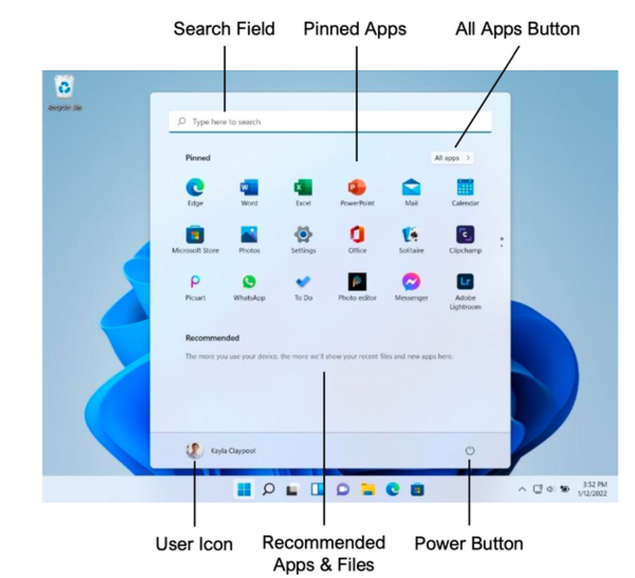 - The Pinned Apps grid gives quick access to the apps you use the most.